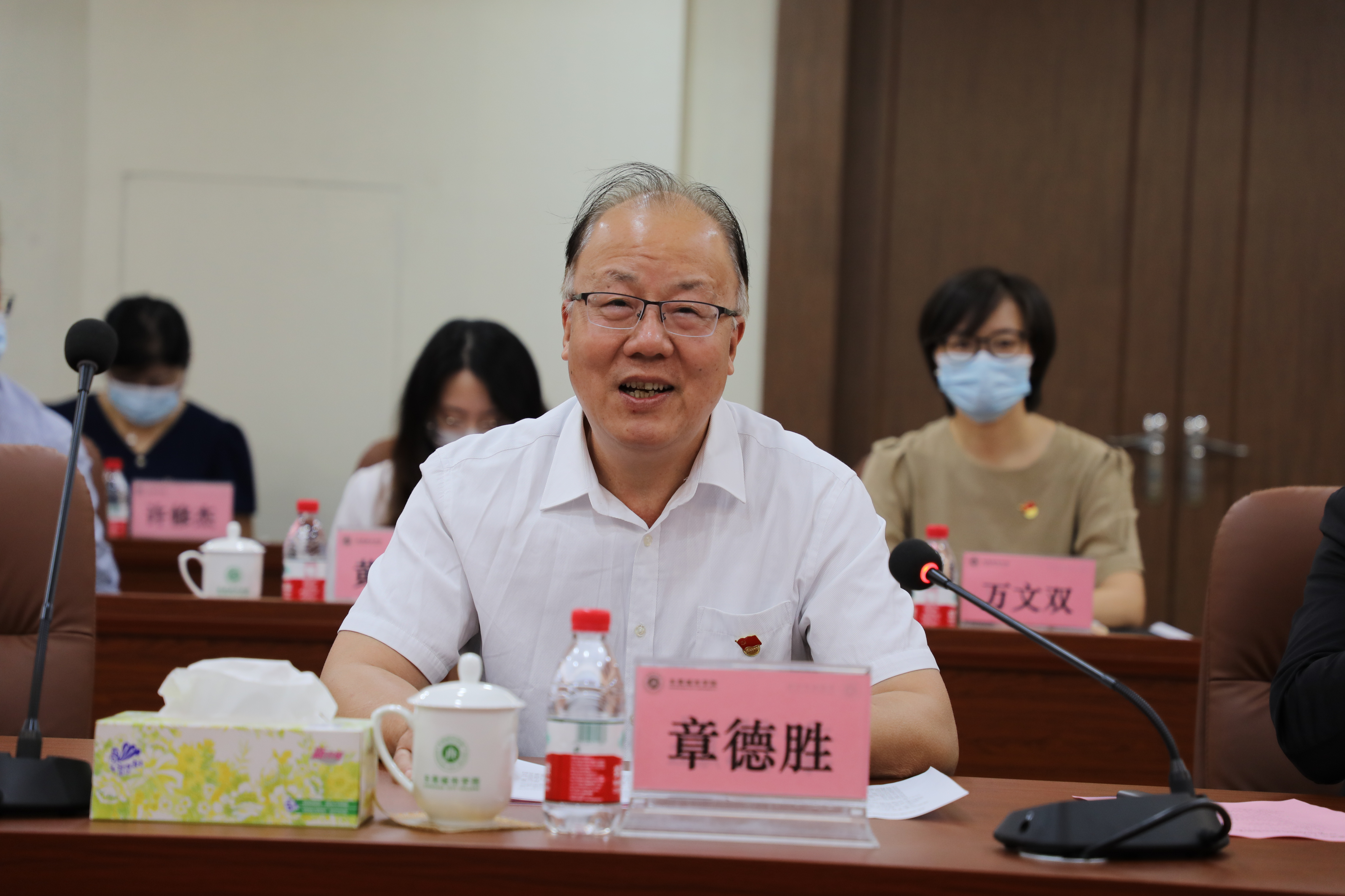 党委书记章德胜致欢迎辞,他对李清泉书记一行的到来表示热烈欢迎,对深圳大学党委的高度重视、精心谋划安排,选拔精兵强将来校帮扶党建工作表示衷心感谢。希望通过这次“组团式”党建帮扶,在深圳大学党委的帮助支持下,进一步加强党建引领,促进学校在党建引领、学科建设、教学科研、学生服务和思政工作等方面迈上新台阶。