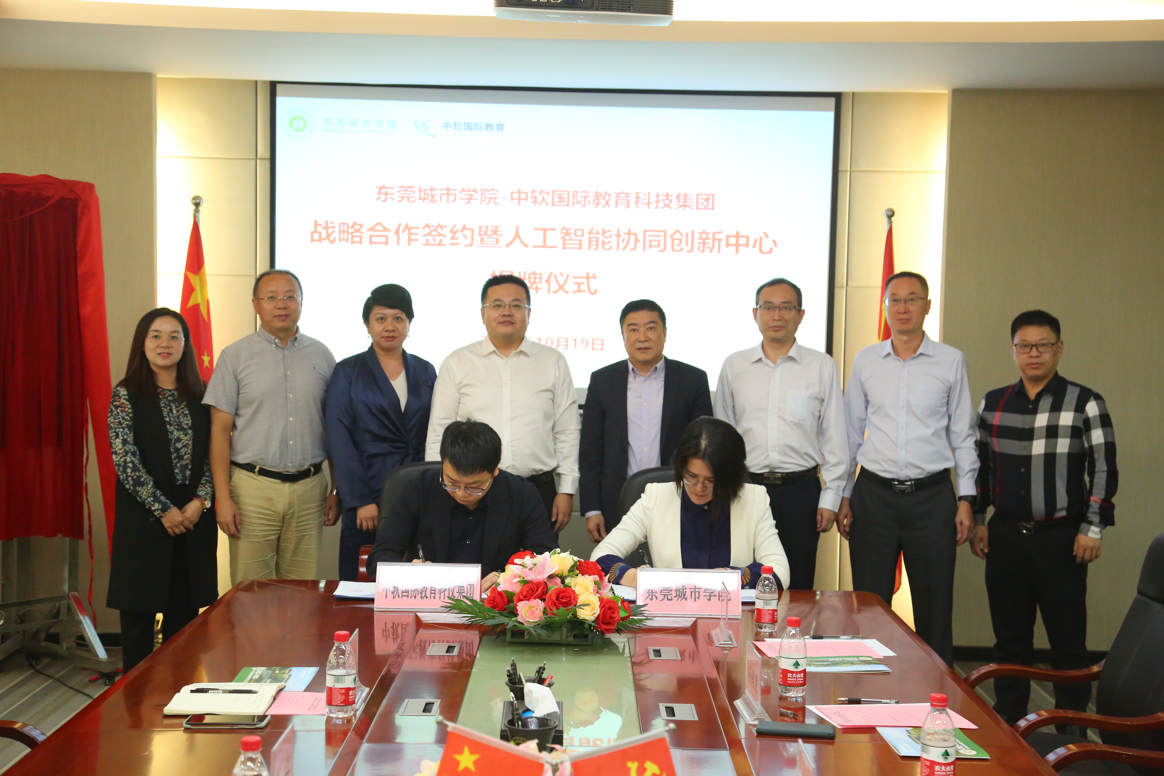 随即副校长陈葆华、中软国际华南区总经理张航代表双方与会议现场签订了“beat365平台官方网站-中软国际校企战略合作框架协议”,双方代表共同参与“中软国际人工智能协同创新中心”揭牌仪式。