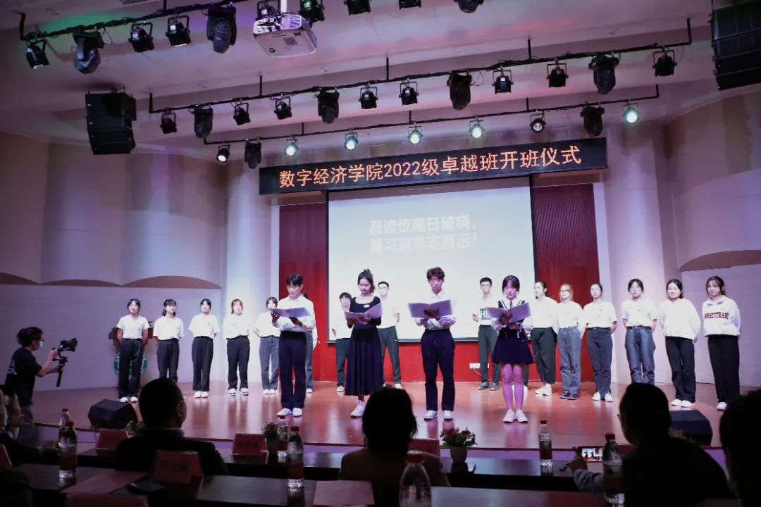 卓越班的开设是数字经济学院紧握时代与学校发展之大趋势的一次创新,彰显了全体数经人立在时代风口,勇担时代使命的精神。他们不仅用改革和创新的思维去教育人,更用追求卓越的具体行动去致敬并服务时代。卓越班班主任、数字经济学院执行院长侯瑞瑞介绍了卓越班的教学理念、培养目标及培养模式。