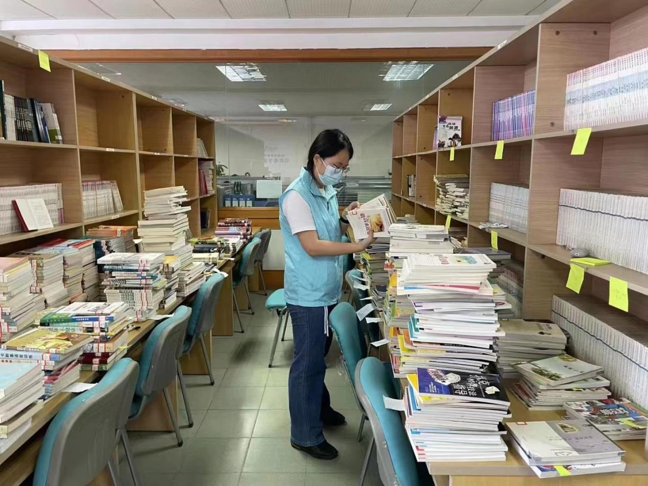 (图为叶菀菁在将图书按编码分类上架)
