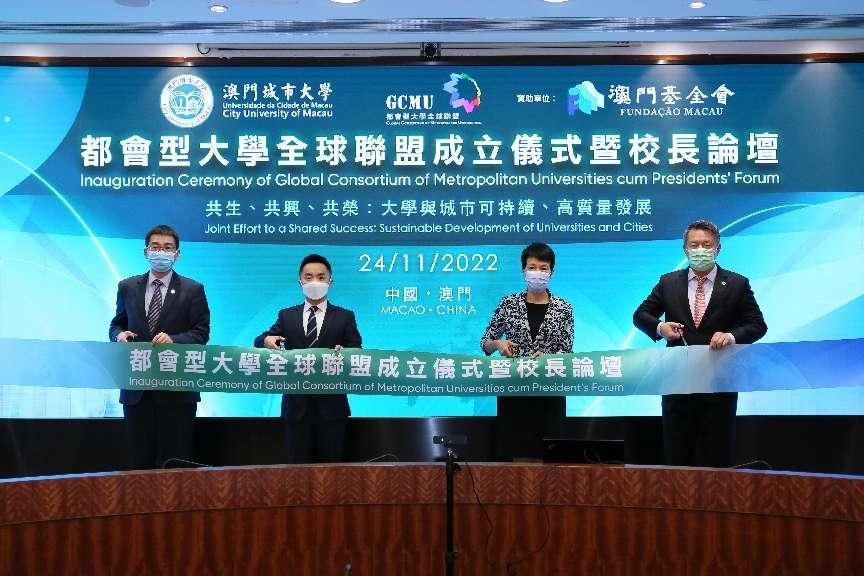 24日下午,在澳门城市大学举办了都会型大学全球联盟成立仪式。澳门中联办教育与青年工作部部长徐婷、教育及青年发展局副局长丁少雄、澳门城市大学校长刘骏、其他四所联合发起高校的校长以及众多的联盟创始成员高校,线上线下出席联盟成立大会和剪彩仪式。