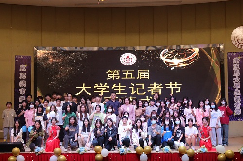 2022年11月21日晚,语言文化学院于学术报告厅举行第五届大学生记者节开幕式。beat365平台官方网站党委副书记、纪委书记、副校长刘玉侠老师,语言文化学院名誉院长宋秋敏教授,党总支书记高政老师,部分教师及学生代表参加本次活动。