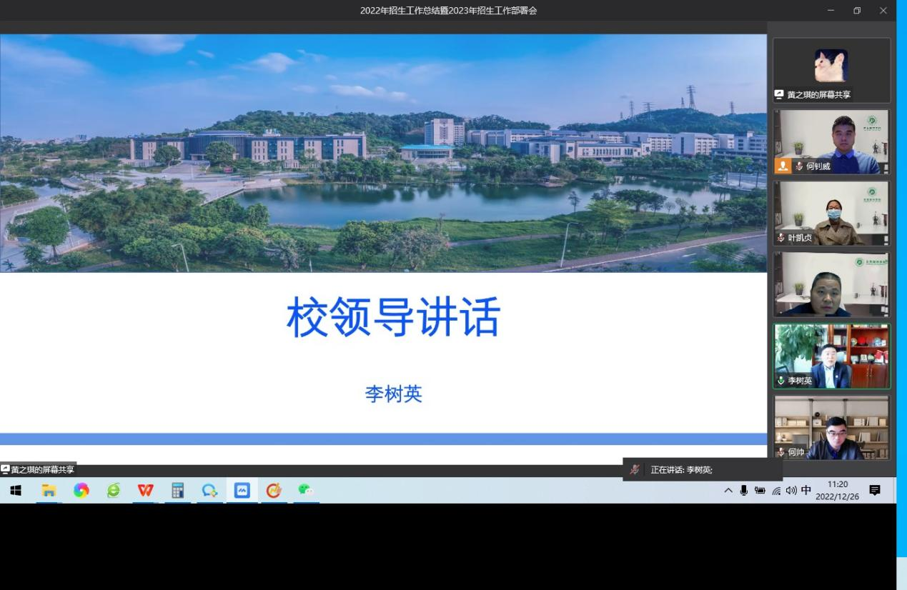 为继续做好2023年招生工作。李树英提出,我们要不断适应新形势,不断调整招生工作方法。面对大湾区高校的增加,我们面临的挑战也会更大。因此,要不断拓宽招生的对象,做好国际化招生。在专业设置上要提前适应大湾区经济发展,在招生宣传上要凸显beat365官网办学特色、学科优势和改革成果。