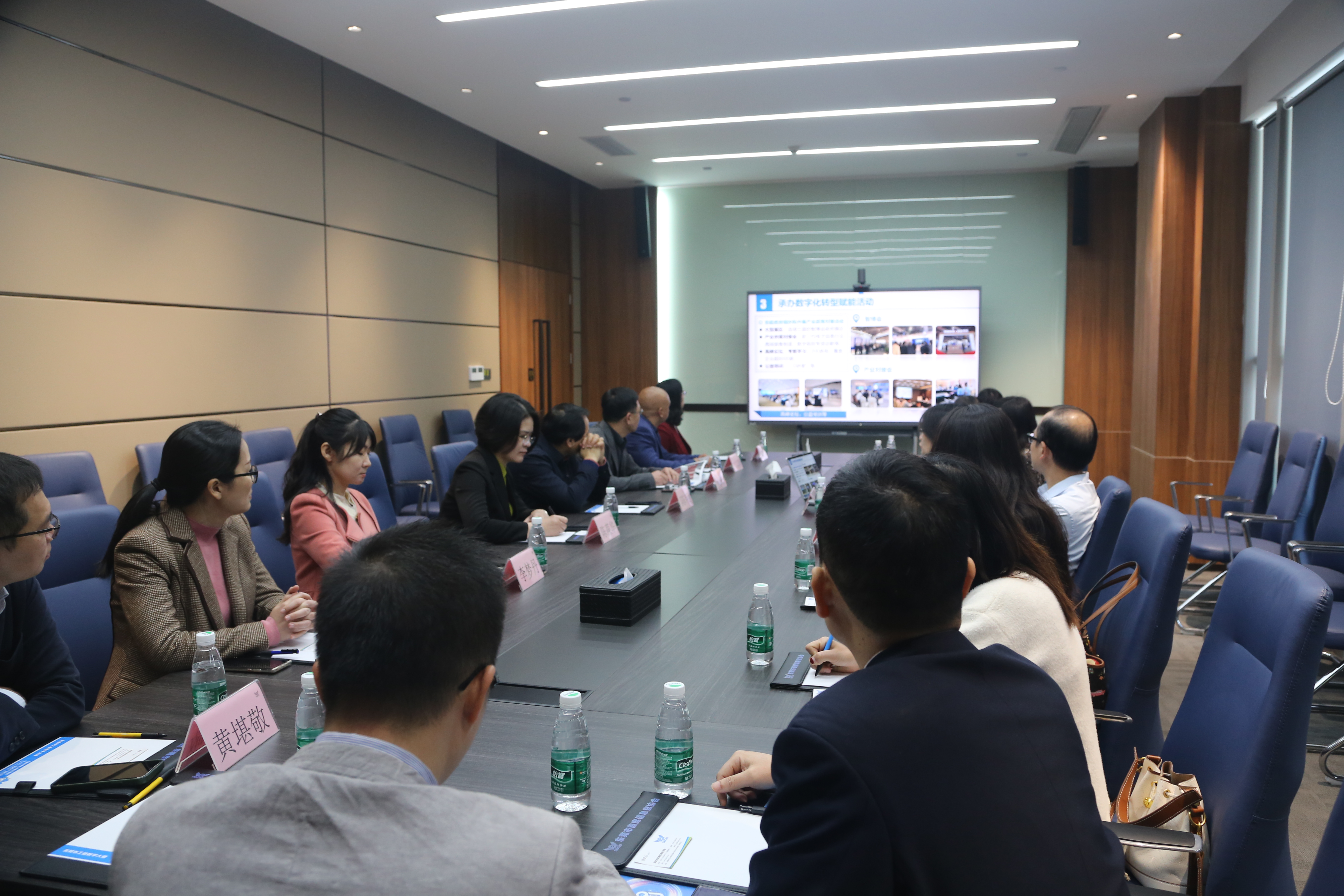 东莞市首席信息官协会会长张庆云及秘书长林建乐对beat365官网调研小组一行的到来表示热烈欢迎。大家在协会秘书长林建乐的带领下参观了大厦数字化转型推广中心展厅,并听取了对展厅的筹建思路与定位目标,赋能方法论,及展厅的数字商超、数字医院、标杆企业展示等工作内容的介绍。