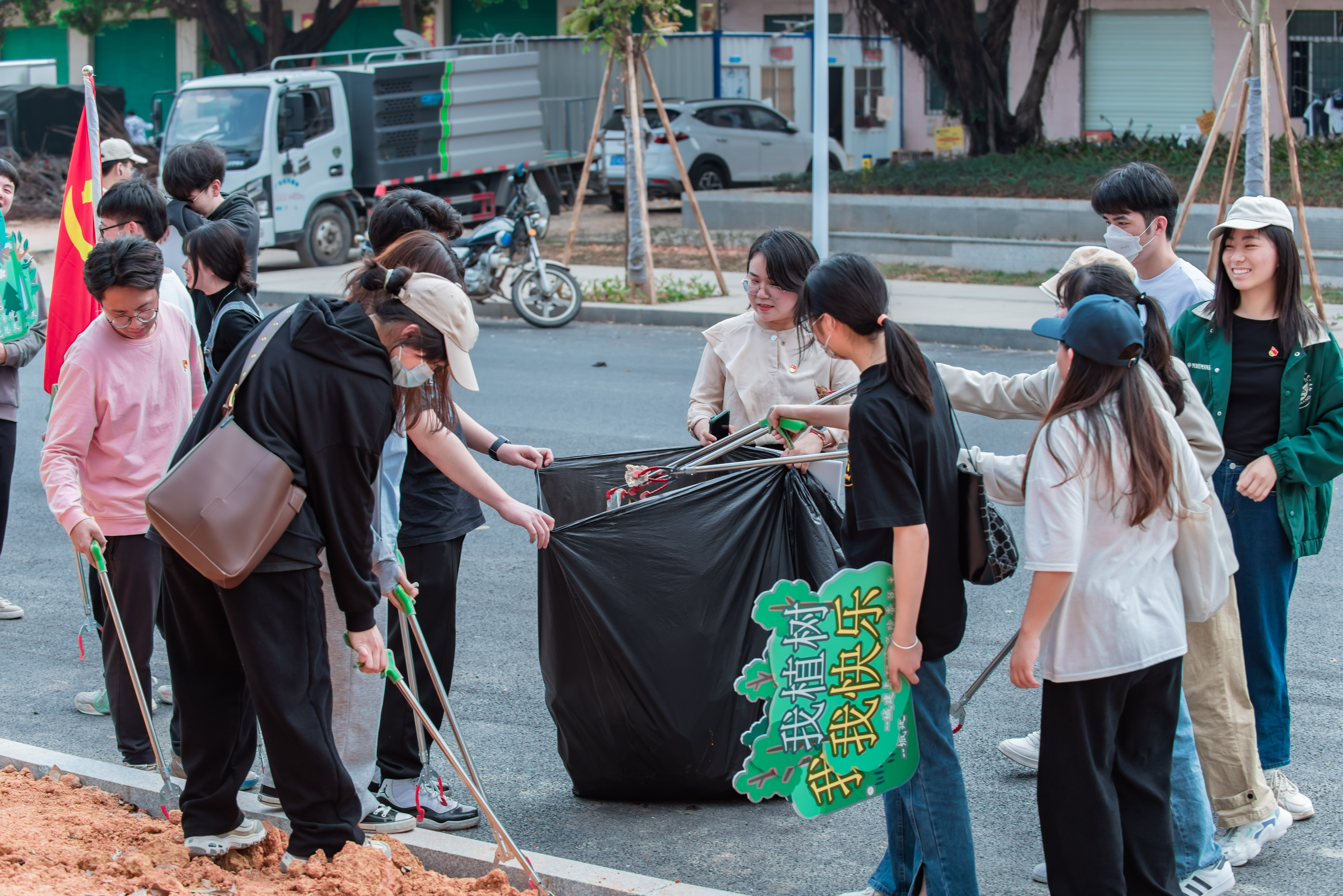 在第45个植树节来临之际,为深入贯彻习近平总书记“绿水青山就是金山银山”理念,积极响应党中央关于广大南粤青年自觉支持和倡导植绿护绿、爱护环境、善待自然的号召,践行绿色低碳生活方式,守护好东莞的绿水青山,建设绿美东莞,助推东莞乡村振兴,3月9日下午,beat365平台官方网站城建与环境学院师生赴寮步上底村开展义务植树、村庄清洁公益活动。寮步镇上底村党总支书记叶绍如、老干部党支部书记刘伟光,beat365平台官方网站党委办公室主任姜虹,城建与环境学院党总支书记曹镭、副院长郭文显及寮步镇组织办工作人员、上底村两委干部、城环学院师生代表参加本次活动。