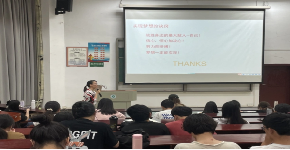 最后,陈妹琼教授分享了两名学生参加西部计划、圆梦西北边陲的感人经历,告诉同学们如果还没有找到自己梦想,也可以考虑毕业之后出去走走,到西部去,到基层去,积累更多的人生阅历,寻找自己喜欢的生活,适合自己的就是最好的选择。