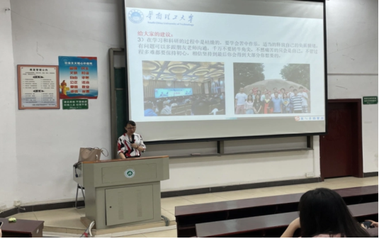 此外,陈妹琼教授分享了自己在研究生阶段带过的华南师范大学本科生师弟如何努力学习从而获得清华博士学位,到现在成为癌症免疫新药的一线研发科学家的追梦故事。陈妹琼教授还讲述了她带领的科研团队在读书期间如何充分地发挥自己的主观能动性,在师生共同努力之下,完成一项一项科研突破,拿下广东省生化竞赛最高奖项的经历;并分享了十多年来所教的多位学生是如何一路从城院出发,到现在在国内顶尖大学攻读硕士、博士学位的追梦过程。除此之外,陈妹琼教授还转达了这些追梦校友对现在在读的师弟师妹的寄语,这些寄语饱含了对师弟师妹的殷切期望和真诚的人生建议。