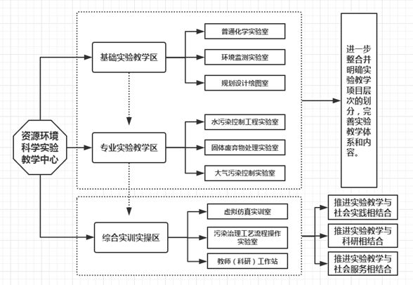 资源环境科学实验教学中心于2019年立项为省级实验教学示范中心,目前拥有基础教学、专业教学、专业创新和科研等四个平台,下设普通化学实验室、水污染控制工程专业实验室、环境监测实验室、虚拟仿真实验室、创新实验室、环境微生物实验室和精密仪器分析实验室等。同时,中心还有东莞绿色能源重点实验室和校级能源与环境重点实验室等科研平台。实验室面积达到1188m2,总固定资产超过665.7万元,教学、科研和实验等各类专职人员达21名,其中教授4人,副教授4人,高级工程师2人,博士4人。