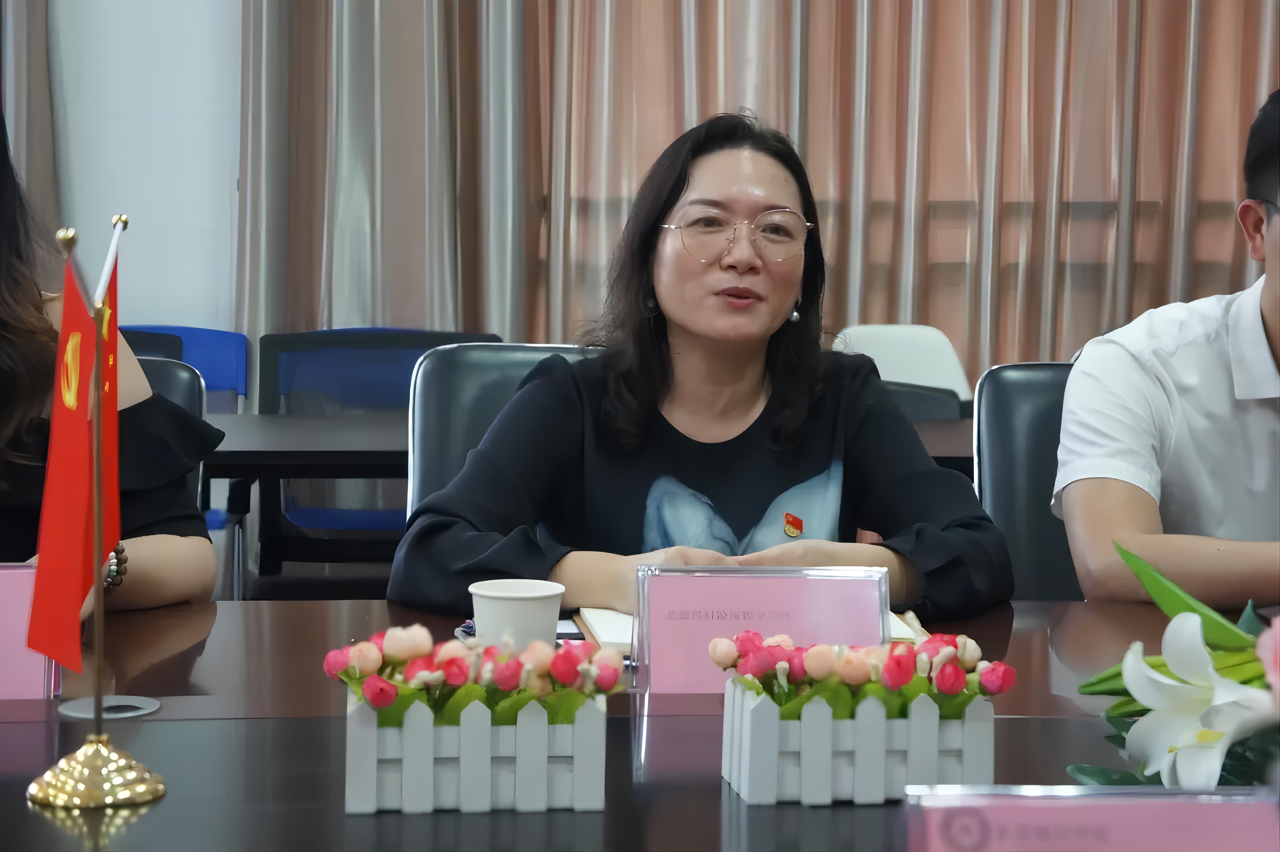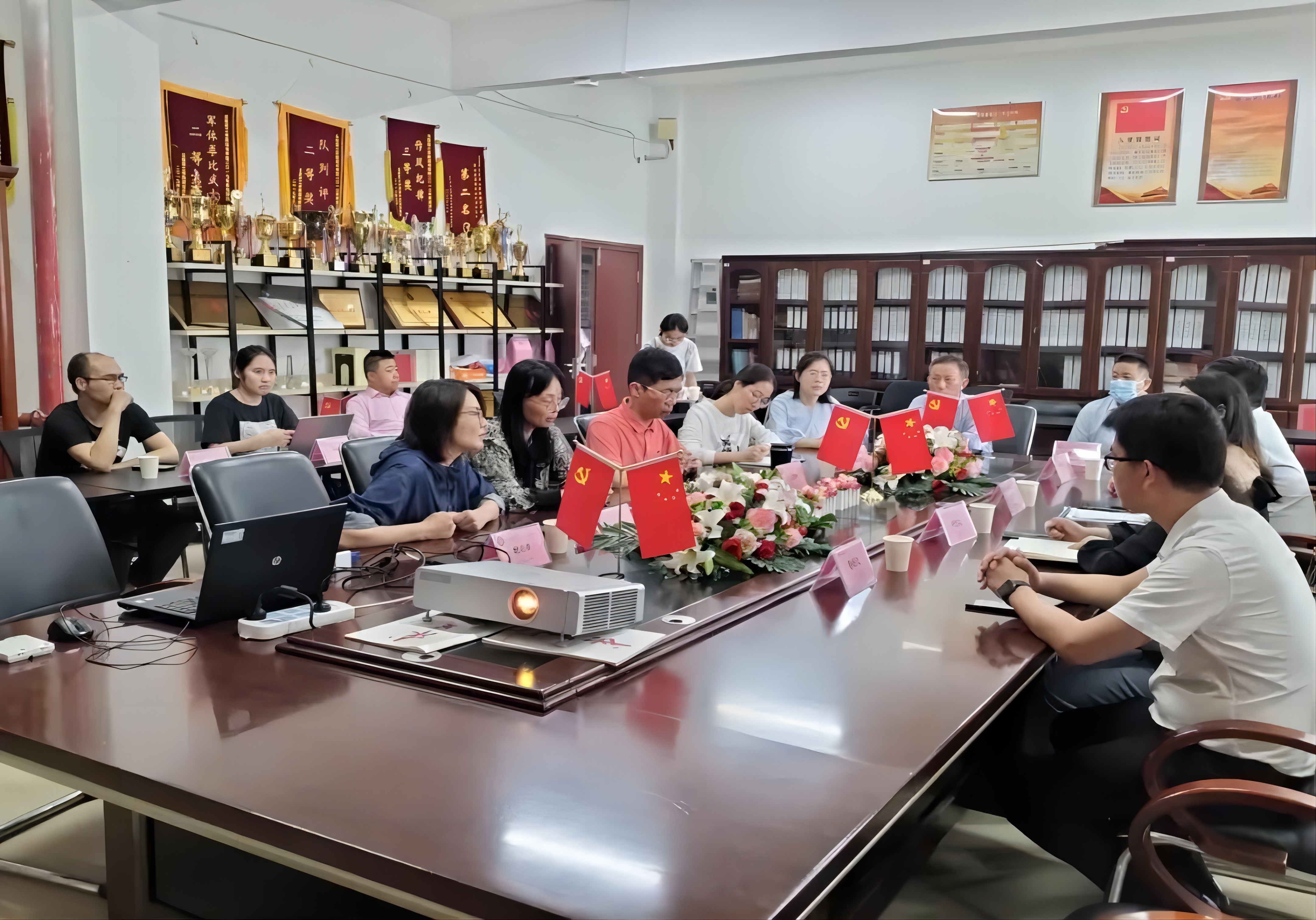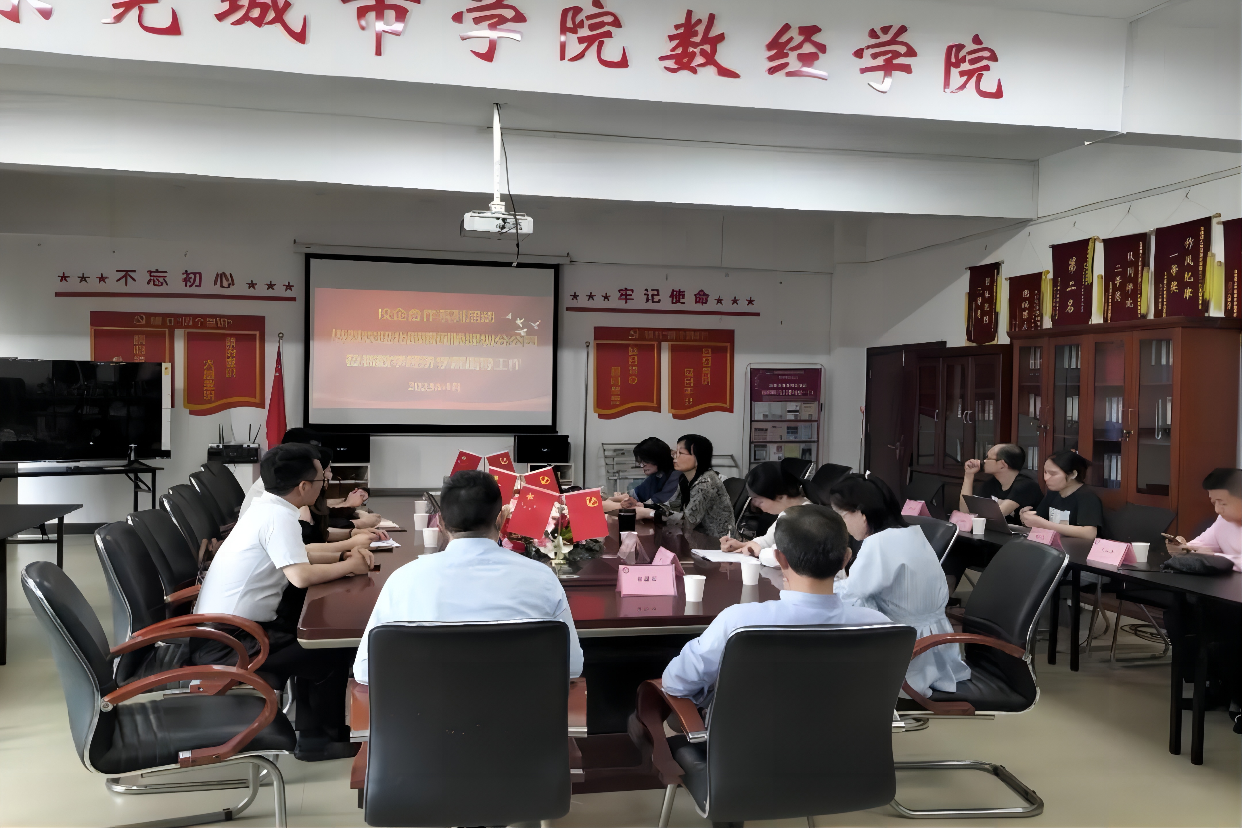 2023年4月20日下午3点北部湾财产保险有限公司(简称“北部湾财险”)深圳分公司党支部书记、总经理何江红一行来beat365官网数字经济学院参加校企合作系列活动。北部湾财险何江红书记、非车险核保岗经理刘娅、客户理赔岗经理陈绍民、客户经理李伟丹以及beat365官网副校长周庆、数字经济学院执行院长侯瑞瑞、党总支书记王炯贤、副院长杨丽君、金融系主任刘飞雨及保险专业全体教师参与了会议。