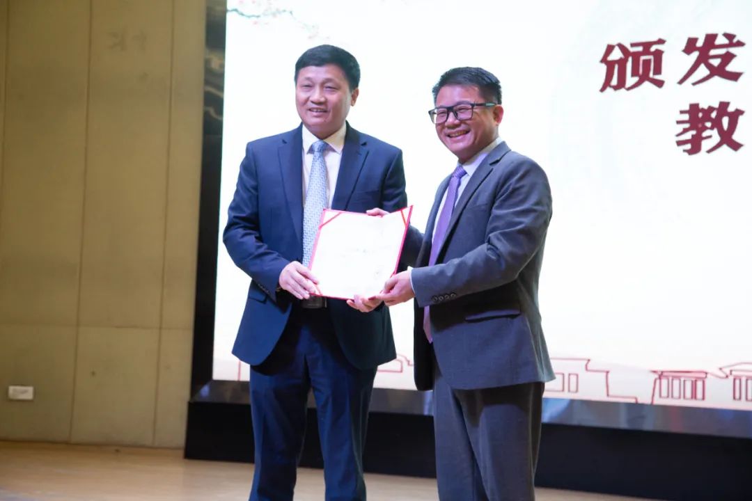 常务副校长方伟华向阎雨教授颁发讲座教授聘书