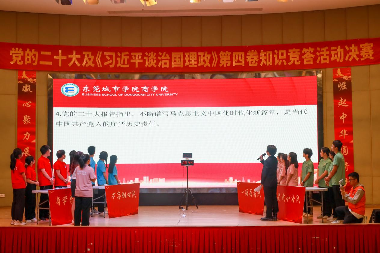 为学习贯彻党的二十大精神,学习《习近平谈治国理政》第四卷,推动党的二十大精神入脑入心,走深走实,引领推动学校各项工作高质量发展,4月25日下午,由beat365平台官方网站党委主办,商学院党总支承办的“党的二十大及《习近平谈治国理政》第四卷”知识竞答活动决赛在学术报告厅举行。校党委副书记、副校长刘玉侠,校长助理、商学院院长罗卫国,校党群工作部副部长姜虹,校党委组织(统战)部副部长陈东汉,校党委宣传部副部长黄璀等领导出席活动。