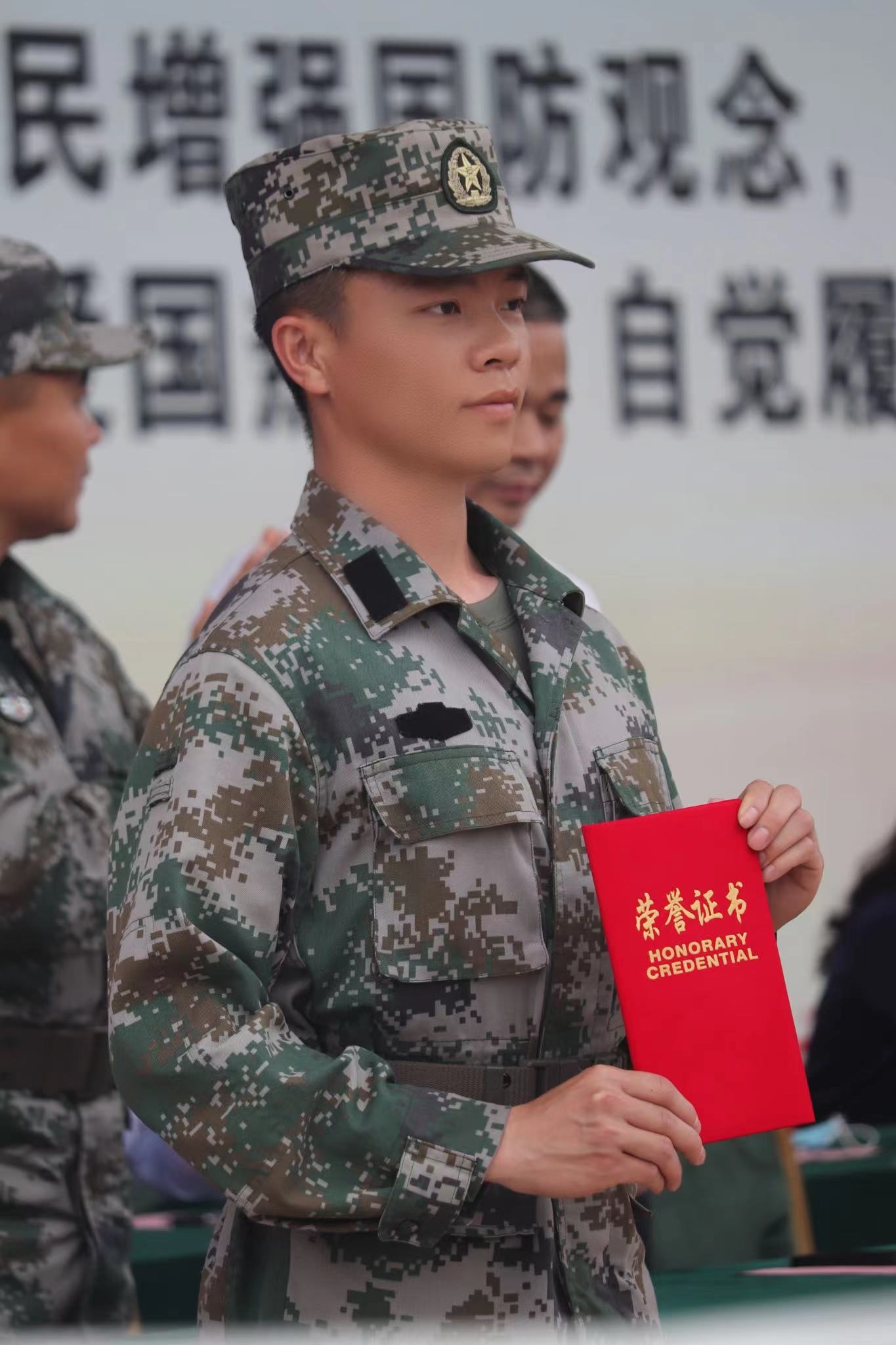 张相和,中共预备党员,2019年入伍,服役期间先后荣获军事训练先进个人称号、比武考核优胜个人称号、“四有”优秀士兵称号和嘉奖等;2021年退役复学,先后荣获优秀共青团员称号、东莞南城年度优秀志愿者称号、优秀班干部称号和校园奖学金等,现任校团委学生副书记、武装部干事、廉洁征兵监督员和退役军人志愿服务站负责人等职务。
