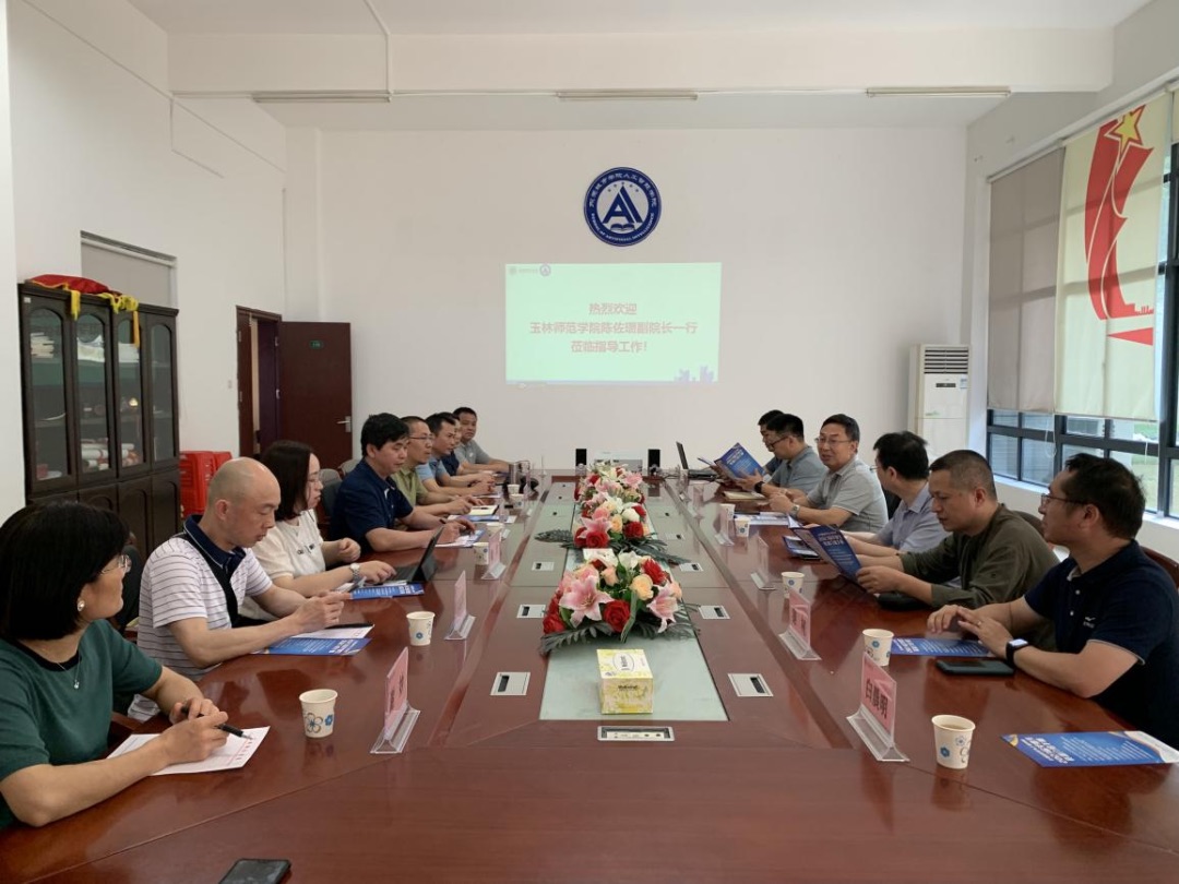 5月5日下午,玉林师范学院计算机科学与工程学院副院长(主持工作)陈佐赞一行8人到人工智能学院考察交流,人工智能学院名誉院长牛熠以及学院领导班子热情接待陈佐赞一行,并一同参观了学校映月湖、图书馆、实验室等地方。