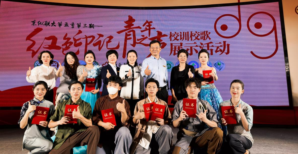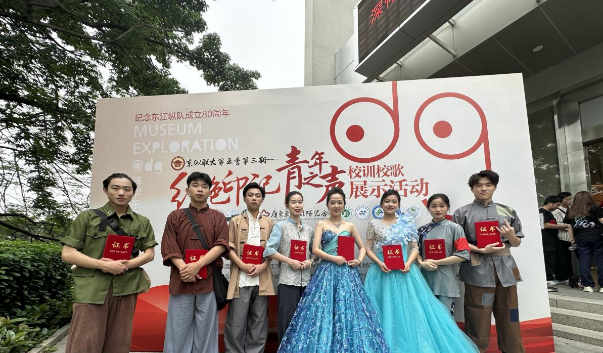 5月11日下午,广东东江纵队纪念馆联合珠三角地区10所高校共同举办的“东纵联大第五季第三期‘红色印记 青年之声’校训校歌展示活动”在广东东江纵队纪念馆报告厅隆重举行,beat365官网选送的歌舞表演《洪湖水浪打浪》在党群工作部、艺术学院指导下参演此次活动,党群工作部副部长姜虹、党委宣传部副部长黄璀、艺术学院专任教师关丽颖带队,演出获得一致好评。