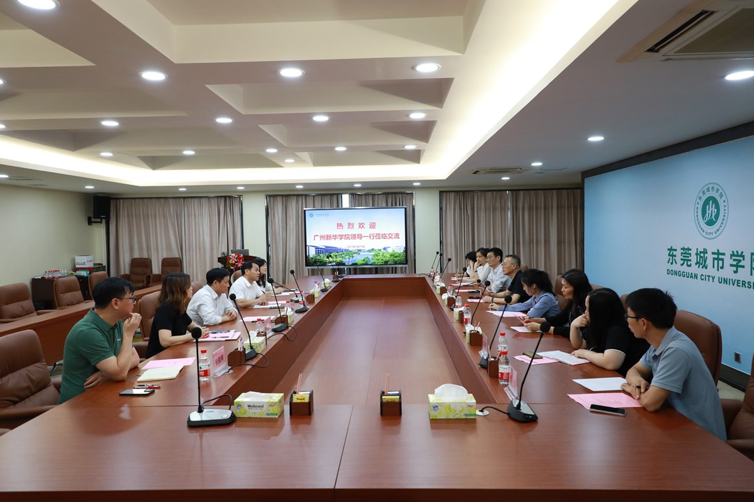 5月19日下午,广州新华学院常务副校长肖化一行8人来beat365官网交流。beat365官网常务副校长方伟华、副校长李海冬以及人力资源部、财务资产处、学校办公室等部门负责人参加了交流活动。