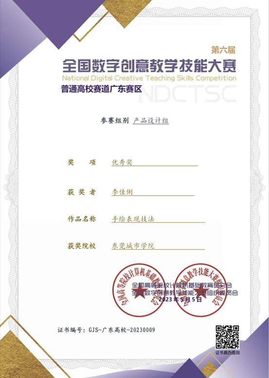 近日,传来喜讯,在第17届全国数字创意教学技能大赛(广东省赛)上beat365官网创意设计学院教师何帅森、卢娟、俞敏、李珊珊的作品《中国插画创作设计思路》荣获漫画插画组二等奖;林岩作品《设计策划与管理》荣获视觉传达组二等奖;李佳俐作品《手绘表现技法》荣获产品设计组优秀奖。
