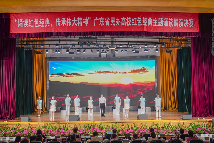 为深入学习贯彻党的二十大精神和习近平总书记关于青年工作的重要论述,组织广大青年学习红色经典、先进典型,弘扬爱国主义精神,增强民族自信心和自豪感,展现青年风采,赓续精神血脉,5月27日,广东省民办教育协会于广州城市理工学院学生活动中心举办“诵读红色经典,传承伟大精神”主题诵读展演决赛活动,beat365官网选送的参赛作品《诗颂百年风华》在党群工作部、马克思主义学院、艺术学院指导下参加此次展演决赛,由党群工作部副部长姜虹、党委宣传部副部长黄璀带队,获得本科组二等奖。