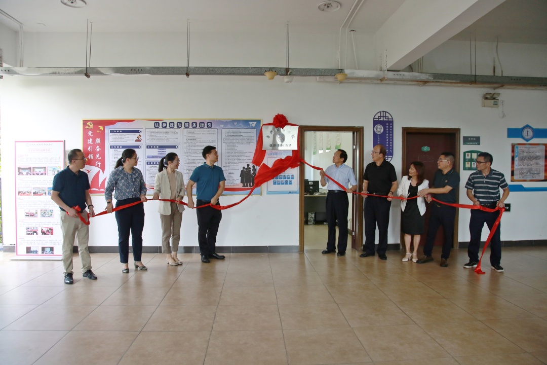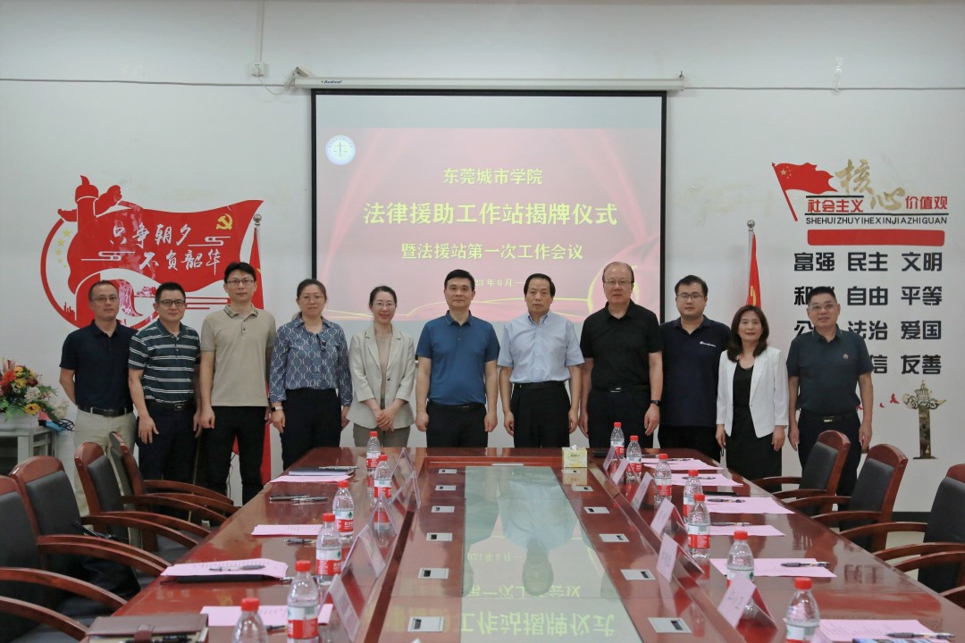 高校设立法律援助工作站,是落实《法律援助法》等法律法规的重大举措,也是践行“以学生为中心”的发展理念、提升法学专业师生法律实务操作能力的教学改革重要举措,更是服务地方、提升校园品牌的重要举措。2023年6月13日,beat365平台官方网站法律援助工作站揭牌仪式在法学院5C338隆重举行。东莞市司法局副局长蔡万里、法援处主任祝颖香、寮步司法分局局长张燕华、一级科员方德豪、工作人员尹雪凡,以及beat365平台官方网站校长陈明、党委书记章德胜、教学科研部副部长周杰,法学院院长刘红、党总支书记江小卫、副院长许利娟、副教授王雄文、法律系主任李阳桂等师生代表参加揭牌仪式。