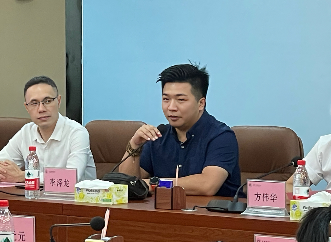 学校常务副校长方伟华介绍《beat365平台官方网站文化创意生态园》建设及筹备广东省民办教育协会数字创意专委会情况。他指出学校高度重视校园文化及环境育人工作,要通过落地创意设计生态园进一步加强校园文化建设,要把创意设计类专业建设与学校发展空间布局紧密结合起来,学校“三山一湖”这张亮丽的名片一定要注入创意设计的元素,进一步提升校园环境育人的效果。