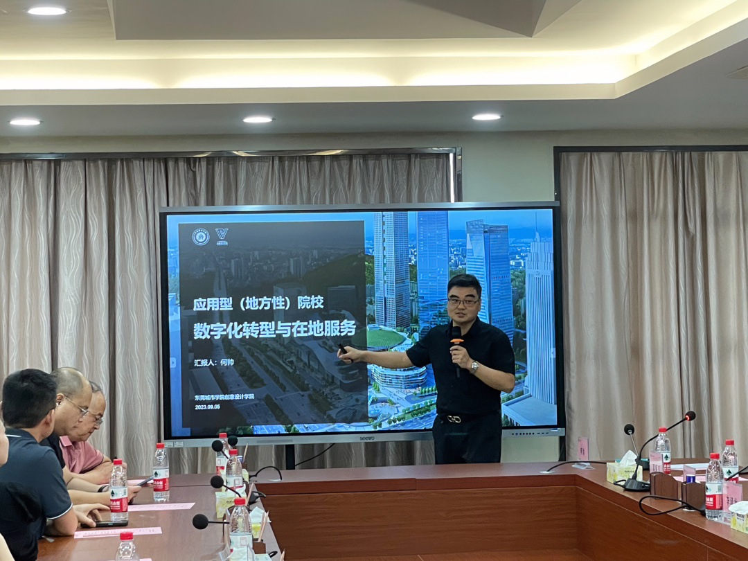 9月5日下午,beat365官网在行政楼六楼会议室召开“创意设计生态园共建交流会”。东莞市文化产业发展促进会执行秘书长李泽龙,东莞实业投资控股集团东莞礼物胡海山等30位东莞文化创意企业家以及beat365官网常务副校长方伟华、副校长李海冬、科技产业处处长赖忠孝,教育部动画、数字媒体专业教学指导委员会委员郭冶等领导、专家和企业家代表参加交流会。交流会由创意设计学院院长何帅主持。