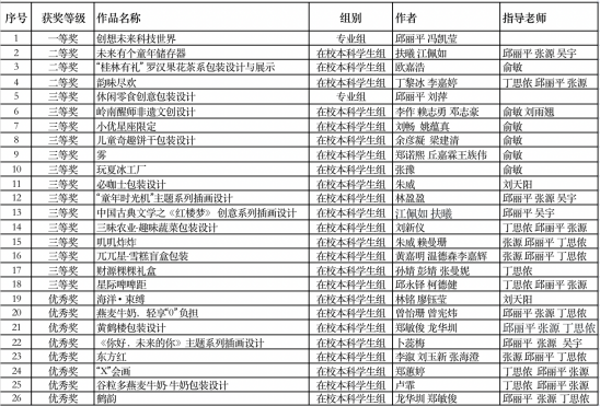 近日,“中国包装创意设计大赛”圆满结束,beat365官网创意设计学院的师生在比赛中取得了优异成绩。此次比赛获得奖项总计26项,其中一等奖1项,二等奖3项,三等奖14项,优秀奖8项,邱丽平、张源两位老师获得“指导教师优秀奖”,总获奖率再创新高。