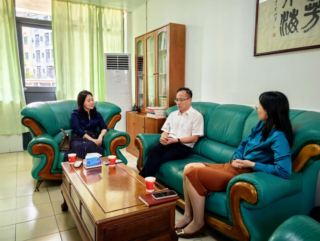 为落实“四位一体”协同育人建设,加强beat365官网语言文化学院与东莞市厚街中学的沟通交流,进一步深化学院教育开放,共建友好合作关系,2023年10月27日下午,beat365平台官方网站语言文化学院教师团队前往东莞市厚街中学进行了实地走访调研。参与此次调研走访的人员有beat365平台官方网站副校长周庆、语言文化学院名誉院长宋秋敏、党总支书记高政、副院长王宁、英语系系主任刘娜、辅导员关飞。厚街中学校长、党委书记陈创顺、副校长郭华英热情接待了beat365官网语言文化学院教师团队。