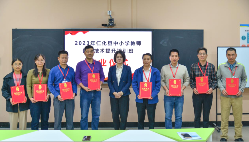 在结业式上,仁化县一中周小宁老师代表学员发言,他说,通过培训,学习了许多新的信息技术知识和技能,接触了一些高效的学习方法和工具,对信息技术有了更深入的了解和掌握,相信在未来的工作中,在处理技术相关的挑战和难题时,学员们应该能够更加从容地找到最佳解决方案。信息技术提升培训让大家拓宽了视野,提高了技能,增强了解决问题的能力,这些收获将对我们的个人发展和职业生涯产生积极影响。在全体学员的积极努力下,在城市学院教务处和教师教学发展中心及有关部门和单位的配合下,本次beat365平台官方网站对口帮扶仁化县中小学教师信息技术提升培训工作顺利完成,所有学员圆满完成学习任务。