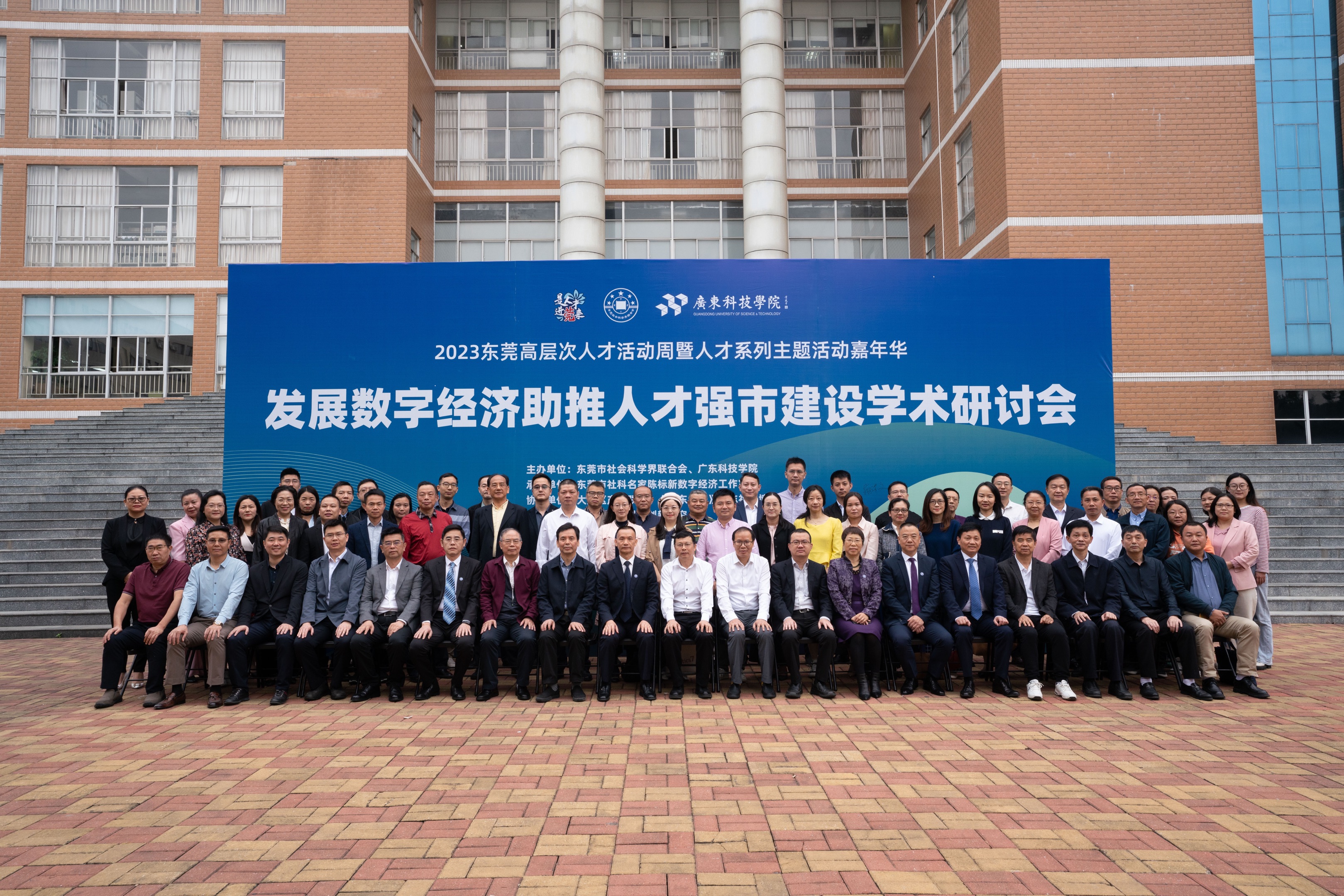 2023年11月29日上午,发展数字经济助推人才强市建设学术研讨会在广东科技学院南城校区举行。本次活动是“2023东莞高层次人才活动周暨人才嘉年华”系列活动之一,由东莞市社会科学界联合会和广东科技学院主办,东莞市社科名家陈标新数字经济工作室承办,旨在探讨交流数字人才队伍建设新路径,为推动东莞数字经济高质量发展、建设“人才强市”贡献力量。东莞市委、市政府相关部门代表,中国社会科学院、武汉大学、对外经济贸易大学、中国电子技术标准化研究院等15所知名院校、研究机构的专家学者,以及来自粤港澳大湾区20余家数字经济类行业协会代表,60余家企业负责人,共500余人参会。