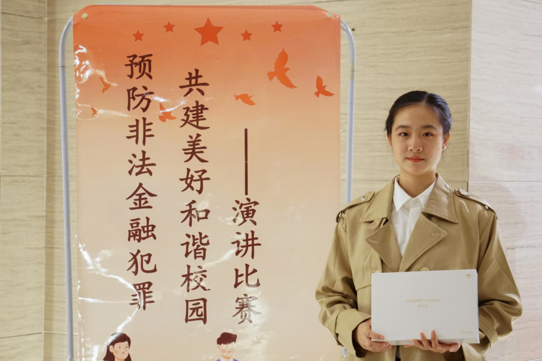特等奖获得者-23级会计专业的兰玥同学表示,从初赛到决赛经过将近一个月的准备,对于非法金融犯罪地认识也更加深入,提升了自身的反诈意识,能更好地参与到维护校园的安全与稳定。除此之外,郭戈老师对每一位选手深入浅出的点评,对选手演讲能力的提高有极大的帮助。她认为这次演讲比赛主要是从学生的角度以“平视”的视角讲给校园的其他同学听,更具有亲和力,听者接受起来也更平和,能更好地让预防和打击金融犯罪走进校园。她相信这次比赛之后,老师与同学们都能提高反金融诈骗的意识,校园也能更加安全与温暖。
