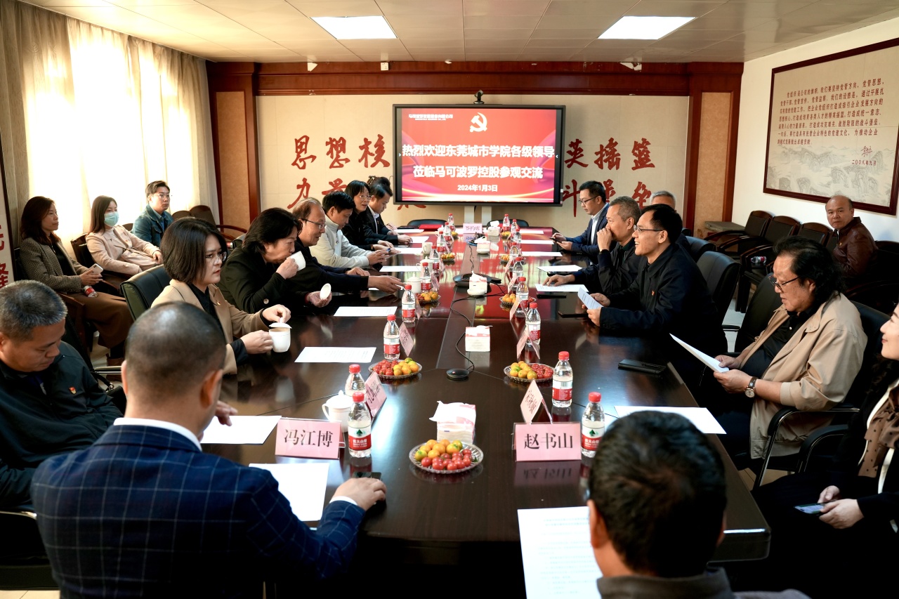 学校党委书记章德胜、常务副校长方伟华从学校历史沿革、办学理念、办学成果、人才培养等方面详细介绍了学校各项事业发展情况,提出民营企业和民办高校本质上是相似的,都需要大力推动党建工作凝心聚力,马可波罗控股的党建工作经验值得学习借鉴,对学校全方位推进产学研用的深度融合,培养新时代应用型人才提供了方向思考。同时结合党建和思想政治工作,提高学生们的思想素质与思维格局,从而不断输出人才服务粤港澳大湾区和东莞制造名城建设,在东莞“双万”城市高质量发展中添砖加瓦。双方还在校企融合、人才培养、学生实习就业等方面展开交流。