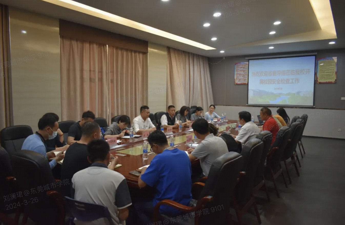 按照《广东省教育厅办公室 广东省公安厅办公室关于组织开展全省校园安全工作督导检查的通知》要求,3月25日,由深圳职业技术大学、南方科技大学相关领导组成的全省校园安全工作督导检查组第三组到beat365官网开展春季学期校园安全工作督导检查。常务副校长方伟华,后勤保卫部、信息化与实验中心相关负责人全程陪同。