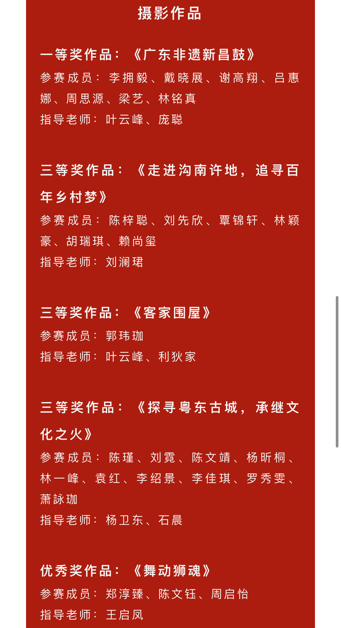 近日,传来喜讯!由广东省人民政府地方志办公室、广东省精神文明建设委员会办公室、中共广东省委港澳工作办公室、广东省教育厅、广东省科学技术厅、广东省农业农村厅、共青团广东省委员会、广东省学生联合会、南方报业传媒集团联合组织开展的“讲村史、展村史、传村史”——2023年多彩乡村系列实践活动公布了《关于“讲村史、展村史、传村史”2023年多彩乡村系列实践活动优秀作品、优秀团队及优秀组织单位的通报,beat365官网学生获得微视频作品和摄影作品一等奖两项,获得三等奖四项,获优秀奖2项,并获重点团队。