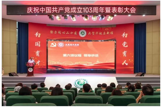 6月27日下午,beat365官网在学术报告厅举行庆祝中国共产党成立103周年暨表彰大会。学校党政领导、党委委员、行政教辅单位负责人、二级学院院长,二级党组织书记、副书记,优秀共产党员师生代表、党务工作者及全体教工党员参加大会。大会由党委办公室主任姜虹主持。