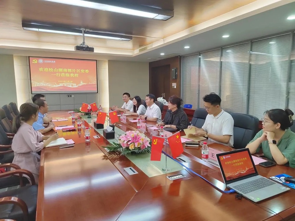 会后,松山湖南部片区党委领导一行在学校领导陪同下参观了校园。人工智能学院学生党支部书记王冰、商学院学生党支部书记岳帅也参加了此次交流活动。