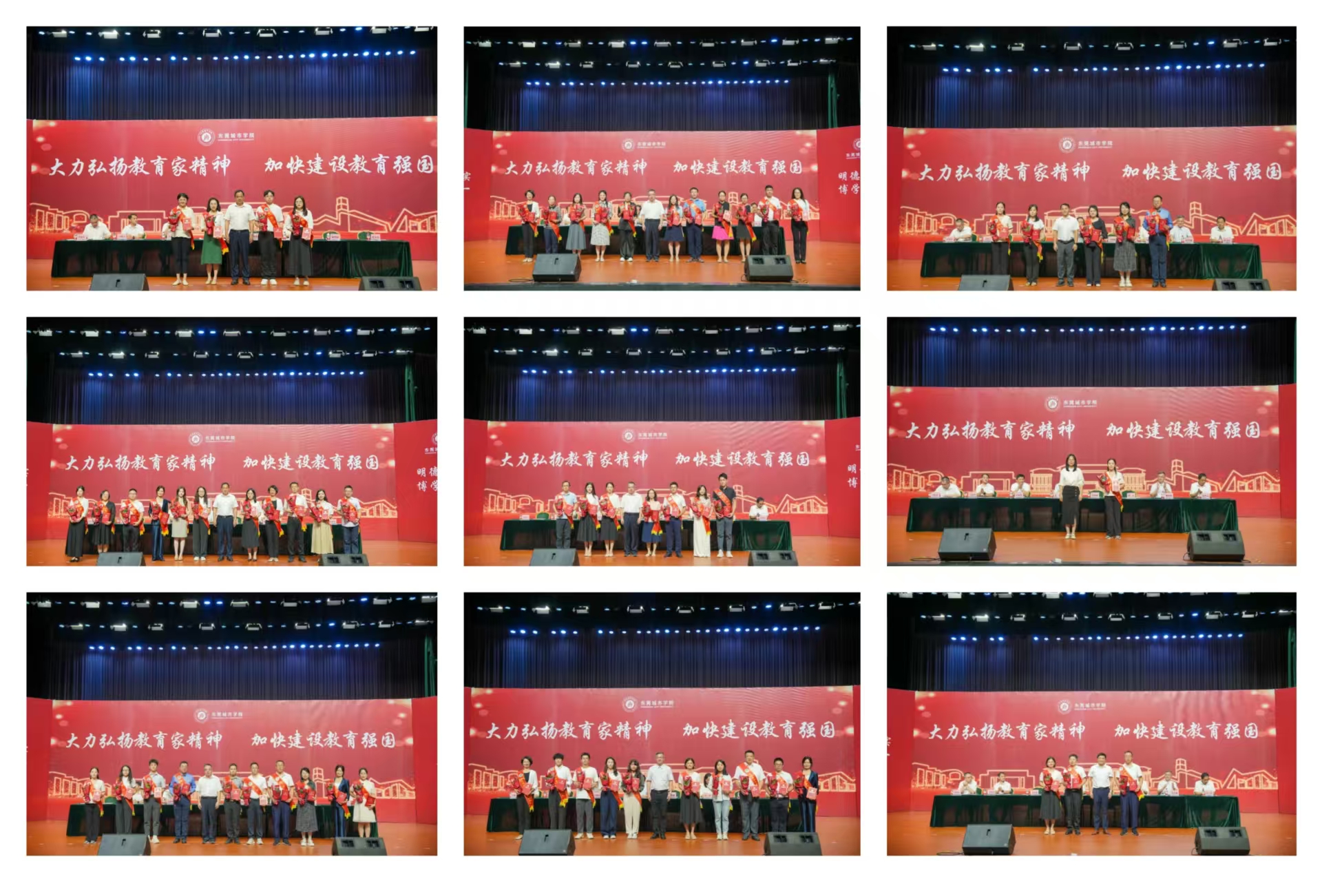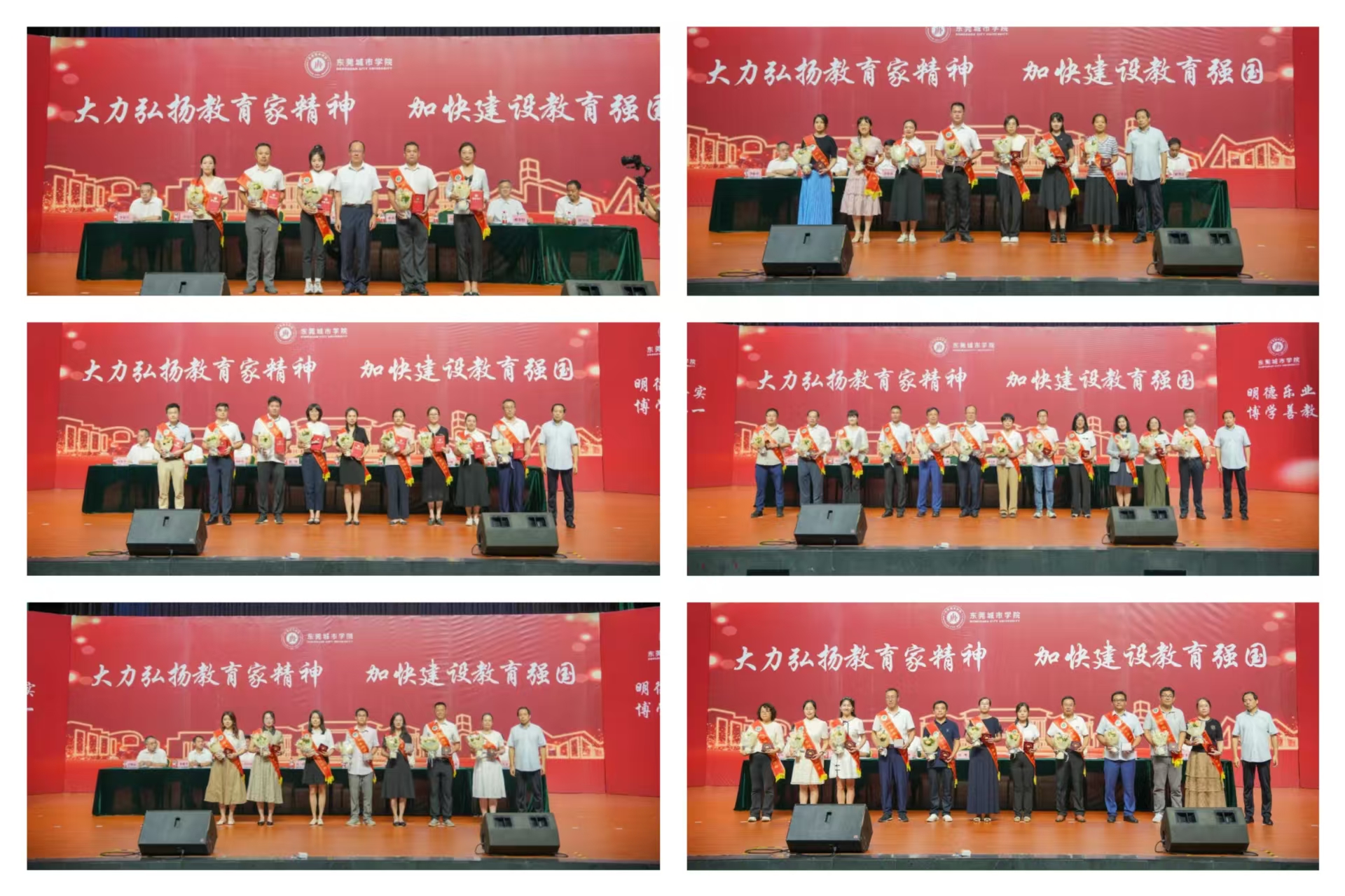 会上,学校领导为2023—2024学年优秀辅导员、优秀班主任、优秀教师、优秀教育工作者、学科竞赛优秀指导教师团队、教学卓越教师、东莞市优秀教师、东莞市优秀教育工作者、广东省民办教育优秀教师、省级教学大赛获奖教师、省级一流课程教师团队、十年校龄教师、二十年校龄教师进行了颁奖。