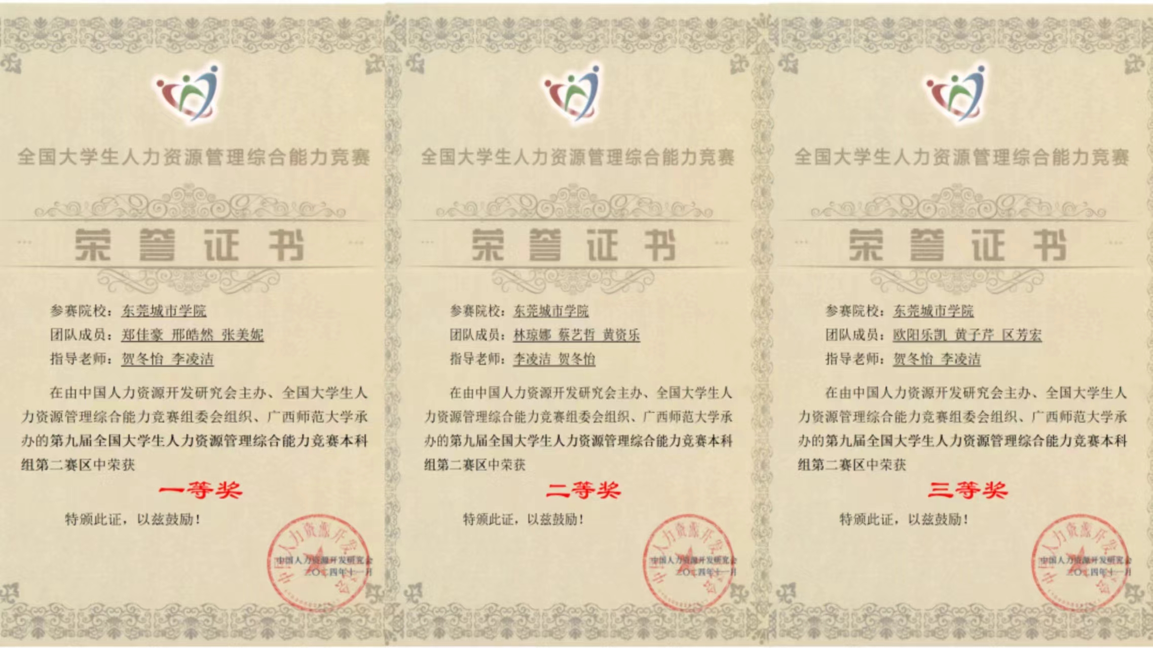 第九届全国大学生人力资源管理综合能力竞赛(本科组),七大赛区历时五个多月,终于圆满结束,beat365官网三支队伍在贺冬怡老师和李凌洁老师的指导下,分别荣获一等奖、二等奖和三等奖。