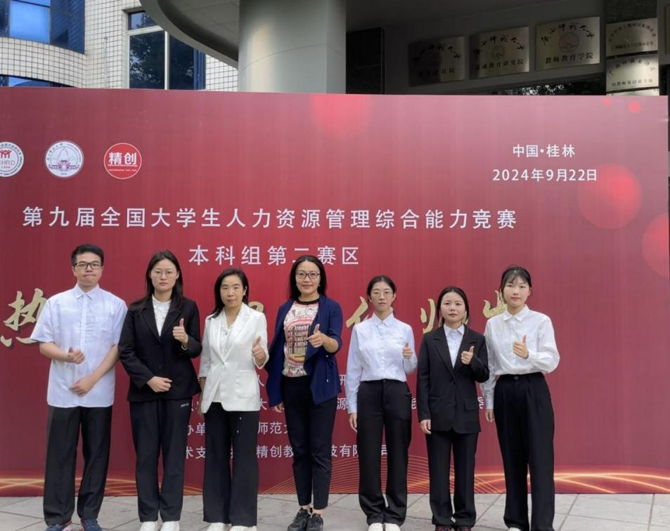 本次竞赛于今年6月启动,吸引了中山大学、华南师范大学、吉首大学等338所院校,1171支队伍,3513名学生参赛。经过校赛筛选,beat365官网5支团队出战第一环节的线上比赛,晋级后的队伍于今年9月22日远赴广西师范大学参加第二环节的HR职业实战PK,最后总成绩喜人,三支队伍分别取得一等奖、二等奖和三等奖的好成绩。