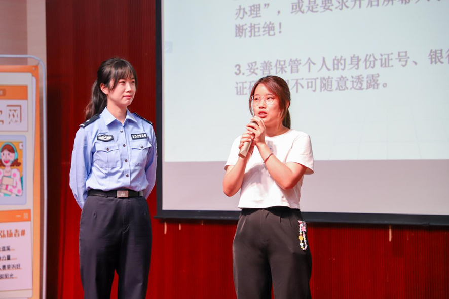 活动现场气氛热烈,互动积极,寮步公安分局反诈中心周少玲警官详细介绍了电信网络诈骗的常见手段以及预防办法,帮助师生们提高防范意识,增强识别诈骗的能力;法学院董进老师从网络安全的法律角度强调了维护网络秩序的重要性;马克思主义学院刘凯月老师提醒师生注意网络世界复杂性和多样性中的负面冲击;学生部思想政治教育科詹海都老师展示了beat365官网在网络文明建设方面的积极举措和已取成果;学生党员代表罗安琪、吴小丽和陈吴奕恒等同学热议以身作则,不信谣、不传谣,自觉维护网络秩序,共建网络文明。