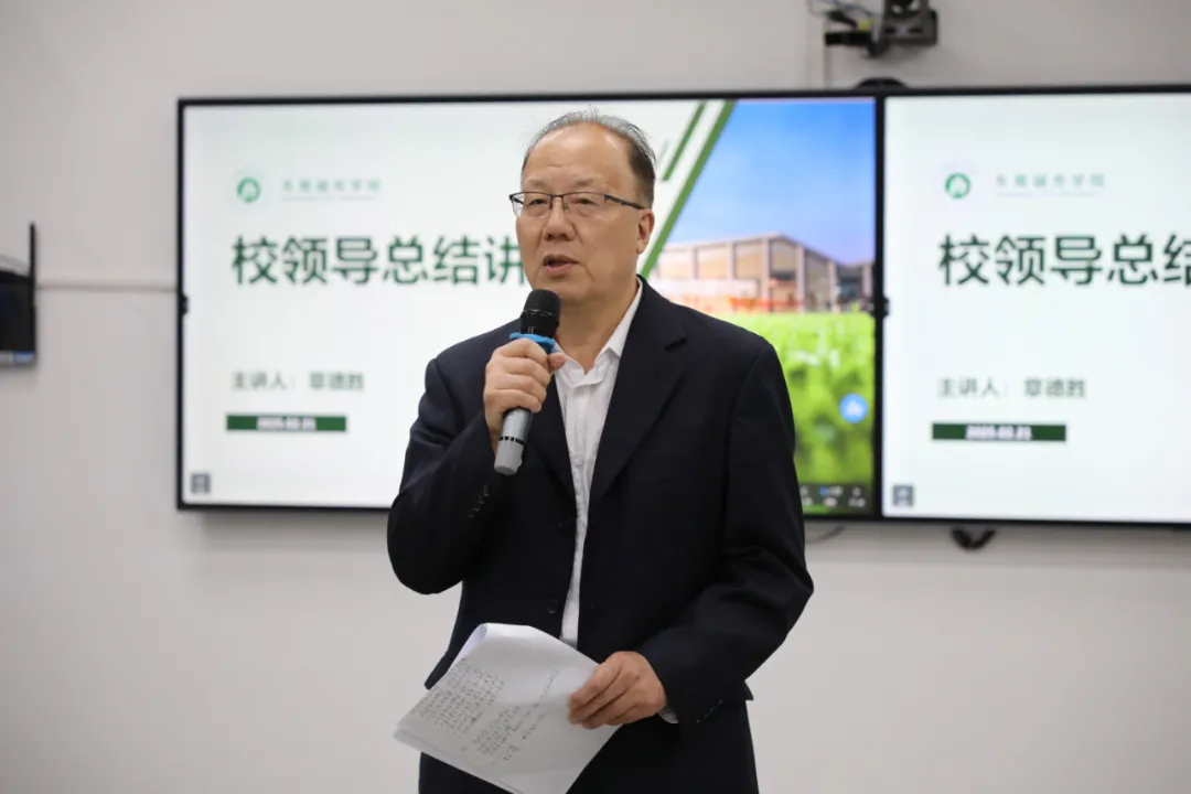 李振华副校长进行了总结,他指出在2025年,各教学单位应当运用创新性的思维去打造与发掘自身的特色与亮点,以质量求生存,以特色求发展,不断提高教学质量与教学水平,积极主动谋划工作,确保各项工作有亮点、有特色,努力引领学院发展。为此,他希望全体中层干部们要做到“向高而攀、向难而行、向新而生、向实而为。”以提升教学质量为抓手,强化教学过程管理,打造特色亮点学科,全力推动学校教育事业的发展。