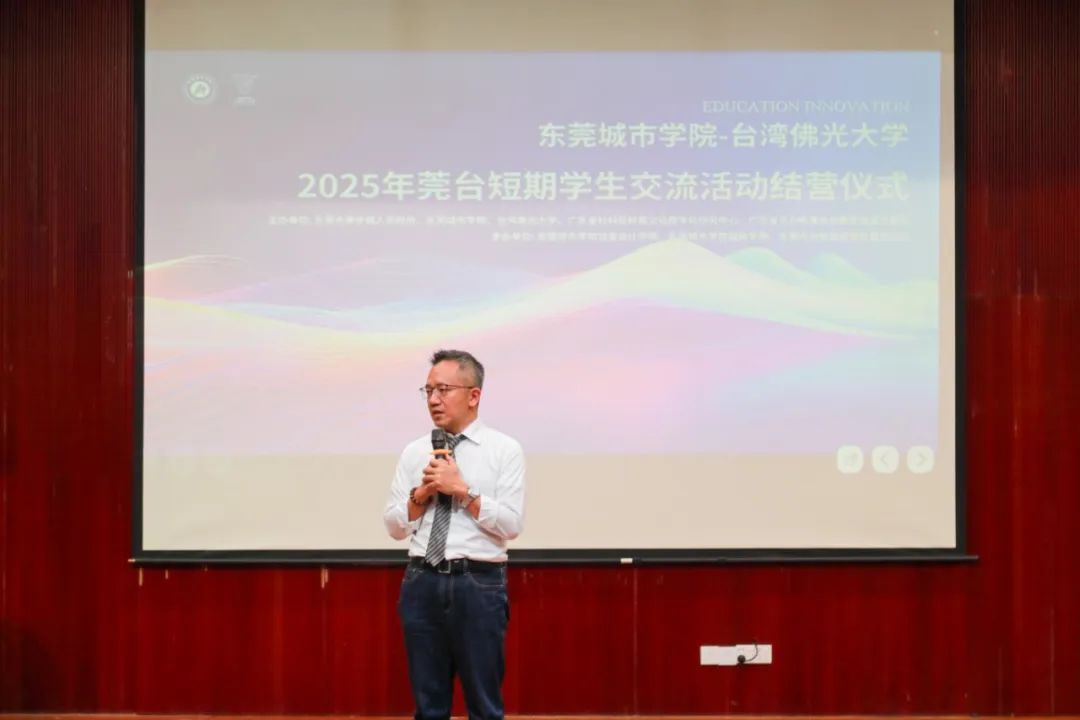 活动伊始,beat365平台官方网站执行校长方伟华率先致辞。他对交流项目进行了回顾与总结,充分肯定了本次交流活动的意义与价值。在项目开展期间,海峡两岸数字艺术教育创新与融合发展研讨会为师生们提供了深度交流学术的平台,创意设计学院教师凭借自身专业素养,让同学们拓宽了学术视野,深化了对数字艺术教育的理解。同时,文化体验活动带领大家走进东莞、广州、深圳等地,感受岭南文化的独特魅力,领略中华文化的博大精深,促进了两岸同学间的相互了解与深厚友谊。方校长还对同学们的成长表示欣慰,对老师们的辛勤付出表达了诚挚感谢。