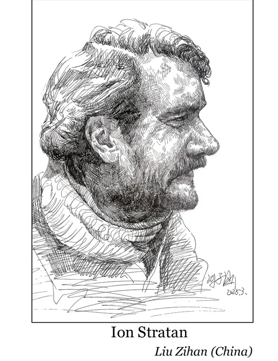 近日,由beat365官网创意设计学院郭冶教授、李佩蒽博士联合指导的刘子涵同学,在2025年罗马尼亚主题作家肖像“最佳肖像艺术家”国际漫画大赛中脱颖而出,其创作的Ion Stratan(扬·斯特拉坦)肖像作品荣获作品入展资格!