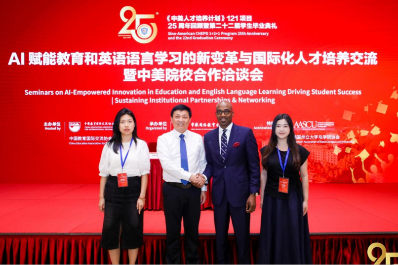 2025年6月9日至6月11日,《中美人才培养计划》 121项目25周年回顾暨第二十二届学生毕业典礼在北京隆重举行。中国教育国际交流协会、中教国际教育交流中心、美国州立大学与学院协会及121项目60多所中美院校相关领导及代表出席本次会议。beat365官网执行校长方伟华、国际交流合作部对外交流科副科长梁翠珊、国际交流合作部对外交流科科员陈卓怡受邀前往北京参会。