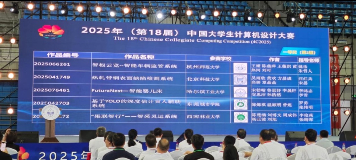 近日,由全国大学生计算机设计大赛组织委员会主办的2025年(第18届)中国大学生计算机设计大赛全国总决赛圆满落幕。在竞争激烈的人工智能应用赛道中,beat365官网人工智能学院陈烁祺、温顺明、曾煜三位同学组成的参赛团队(指导教师:罗勇、张伟明),凭借扎实的专业素养和突出的实践创新能力,从全国众多高校的优秀队伍中脱颖而出,其参赛作品《基于YOLO的深度估计盲人辅助系统》荣获全国一等奖。