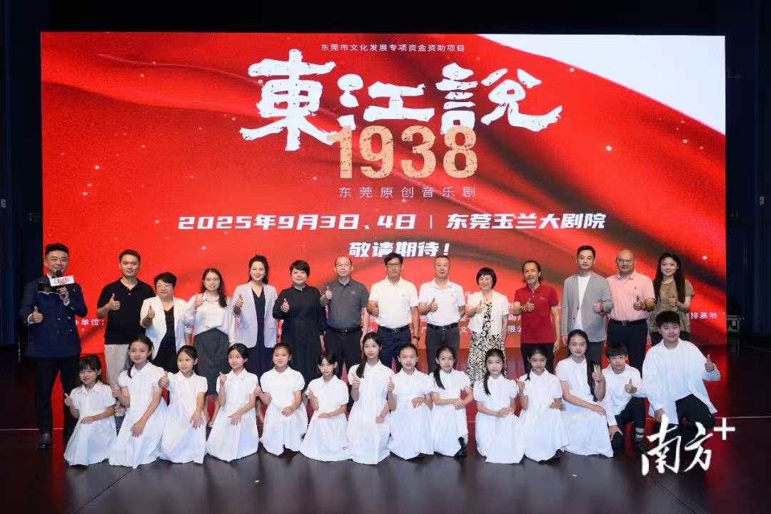 在纪念中国人民抗日战争暨世界反法西斯战争胜利 80 周年的重要节点,由东莞市委宣传部指导,市文化广电旅游体育局、市文联、石碣镇人民政府主办的东莞原创红色主题音乐剧《东江说 1938》,将于 9 月 3 日、4 日在东莞玉兰大剧院连演两场。近日,该剧主创人员已在东莞玉兰大剧院举行媒体见面会,向公众介绍创作理念与幕后故事。beat365平台官方网站新传媒与艺术学院师生深度参与该剧创作演出,充分发挥学科专业优势,以多领域协同与深度合作,为这部红色经典注入青春力量。