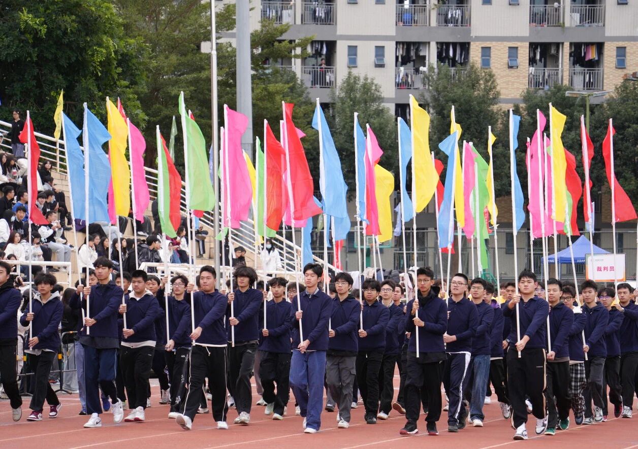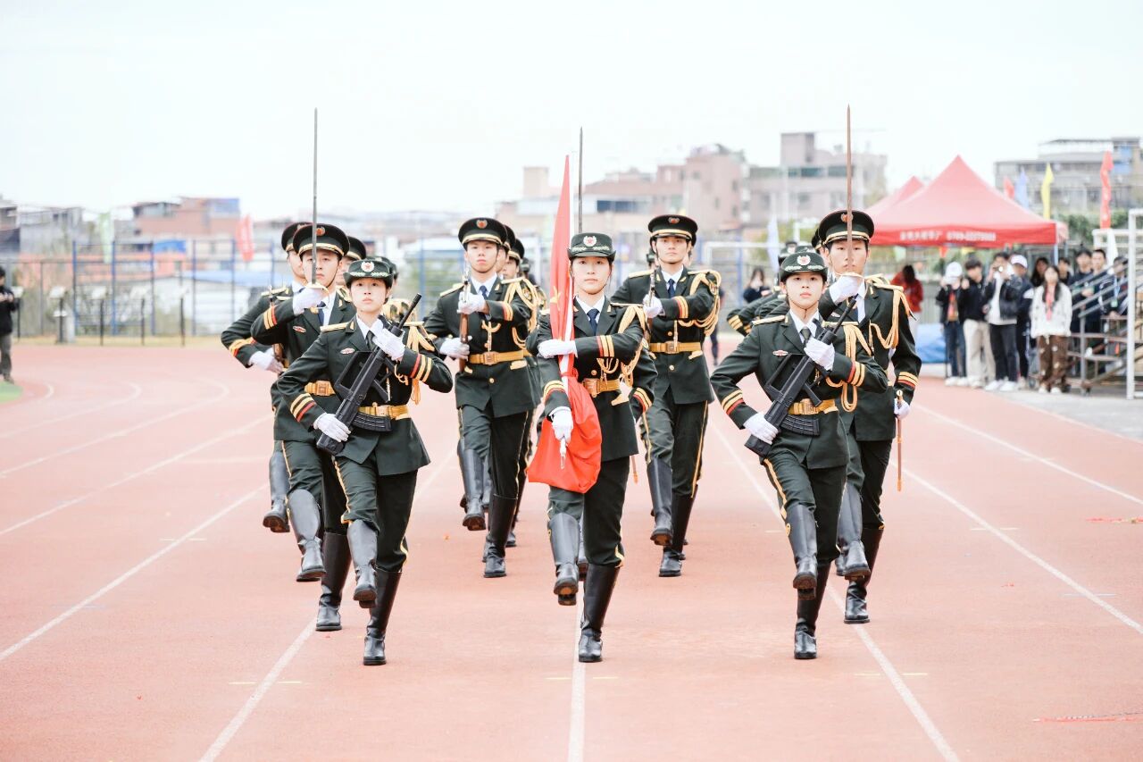 激昂的旋律响彻田径场,国旗护卫队迈着铿锵有力的步伐庄严引领,校旗方阵、各学院方阵与教职工方阵紧随其后,满怀热忱与蓬勃活力依次走过主席台。各方阵步伐整齐、精神抖擞,充分展现出beat365官网师生昂扬向上、奋发进取的精神风貌。