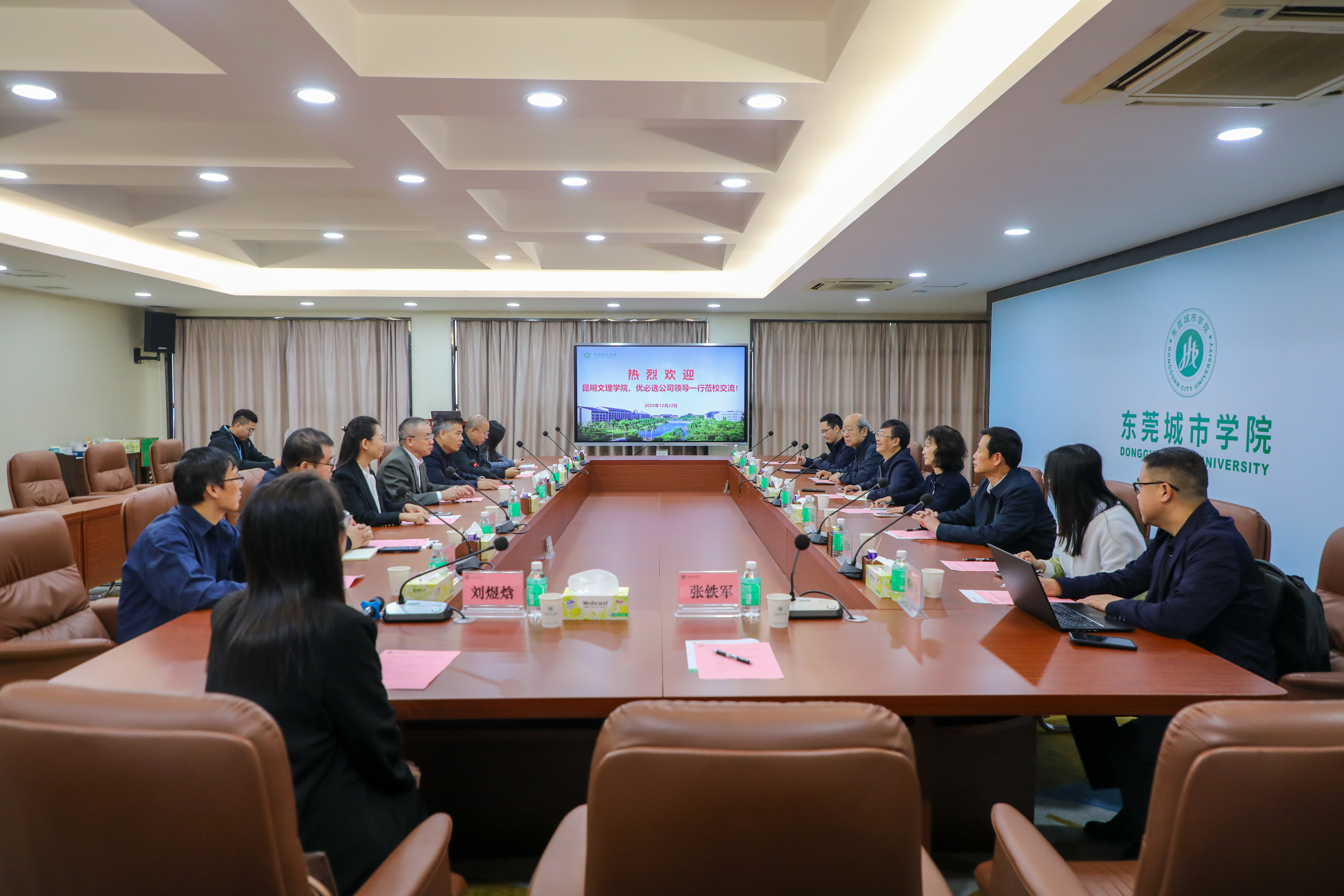 近日,昆明文理学院党委书记吴应利,校长助理、教务处处长吴雁汶,信息工程学院院长刘敏昆、副院长李宇亮,特聘专家吴思聪,专任教师宋月亭,优必选产教融合市场总监李伟光,产教融合方案总监张铁军,优必选昆明公司综合管理部负责人刘煜焓等嘉宾领导来beat365官网考察交流,beat365官网校长李振华,优必选智能机器人产业学院副理事长申明阳,理事刘洁等相关部门负责人参与交流会。双方围绕产教融合、学科建设、人才培养等议题展开深度研讨。