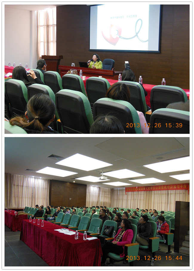 12月26日,东莞市康华医院心理睡眠科主任何淑蓉教授在行政楼112会议室做主题为“大学生心理危机识别与干预”的讲座。我院200多名学生心理工作者、系部心理委员代表及团委心理工作委员会成员代表参加了本次讲座。