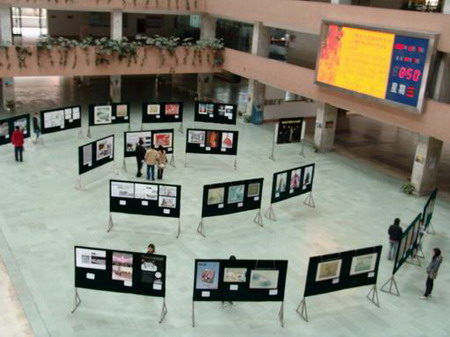 12月7日,我院艺术设计专业师生作品在院行政楼大厅隆重展出。这次联展共展出师生作品110幅,其中有游香平老师的工笔花鸟画,林岩老师的服装设计,王宁和吴宇老师的艺术设计以及学生的习作。