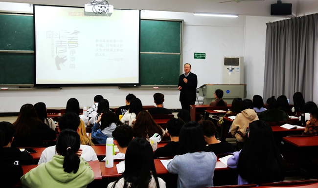 在声情并茂、生动活泼的课堂上,章德胜书记告诫同学们要警惕和抵制错误的人生观,鼓励大家自觉将人生目标同国家和民族的前途命运紧紧联系在一起,最大程度地实现人生价值,成就精彩人生。