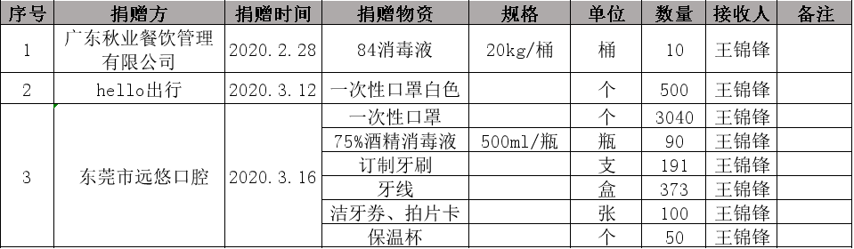 为规范捐送物资的管理使用,接受全校师生及社会监督,现将第一批防疫物资捐送情况公示如下: